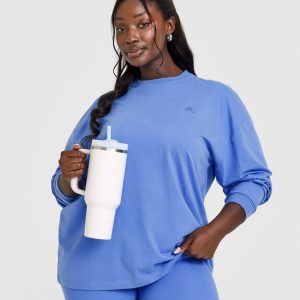 Classic Oversized Lightweight Long Sleeve Top Glaucous Blue