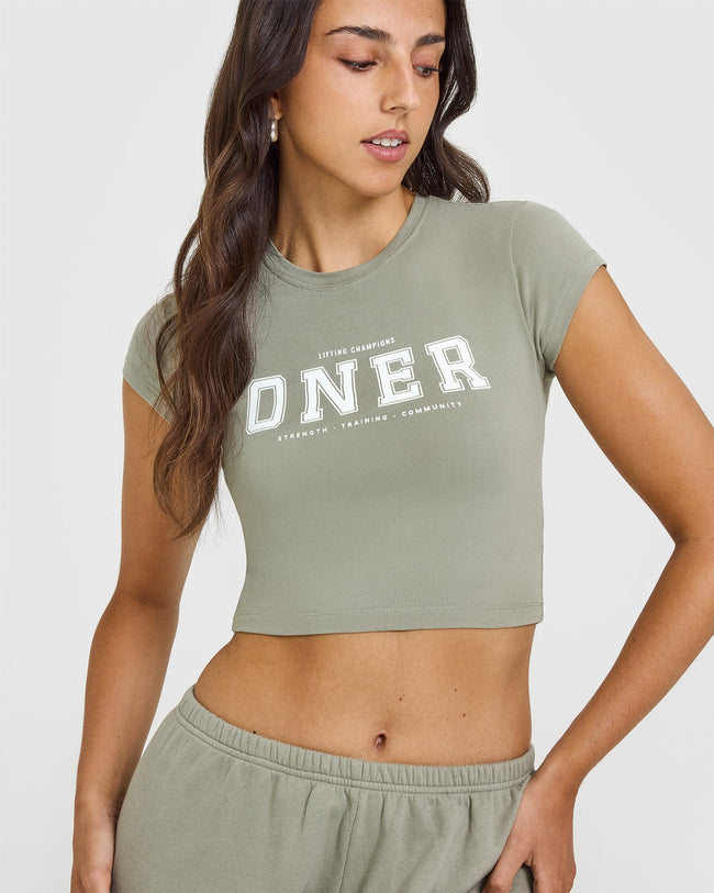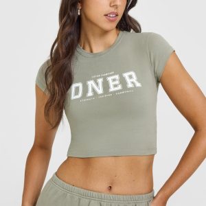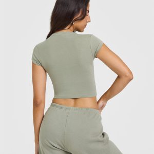 Cotton Baby T-Shirt with Printed Logo Soft Sage Green