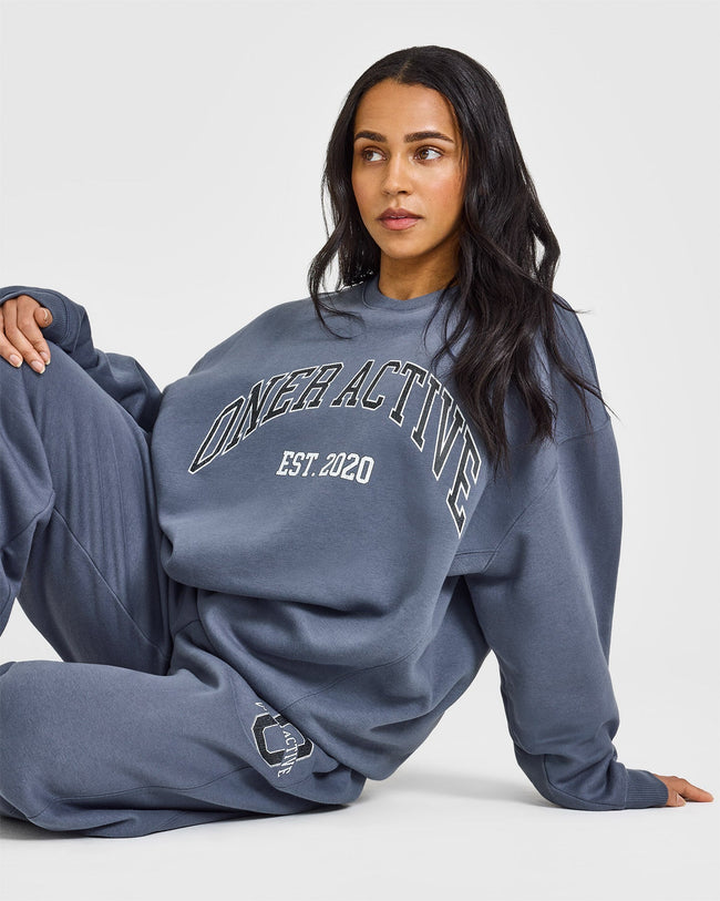 Foundations Oversized Sweatshirt With Large Printed Graphic Granite Blue