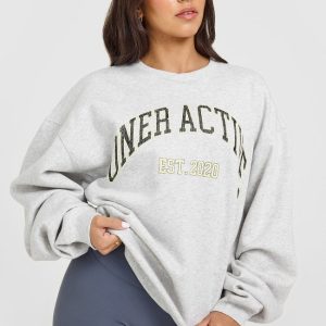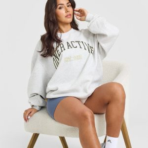 Foundations Oversized Sweatshirt With Large Printed Graphic Light Grey Marl
