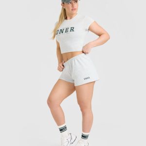 Lightweight Shorts with Printed Logo Light Grey Marl