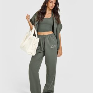 Lightweight Straight Leg Joggers with Graphic Dark Khaki