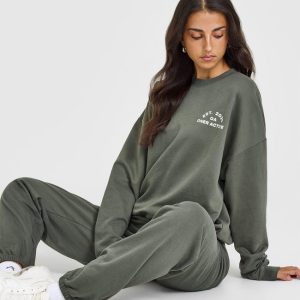 Lightweight Sweatshirt With Graphic Dark Khaki