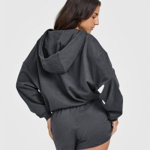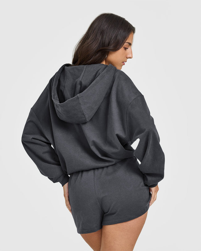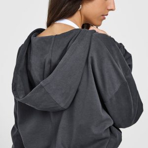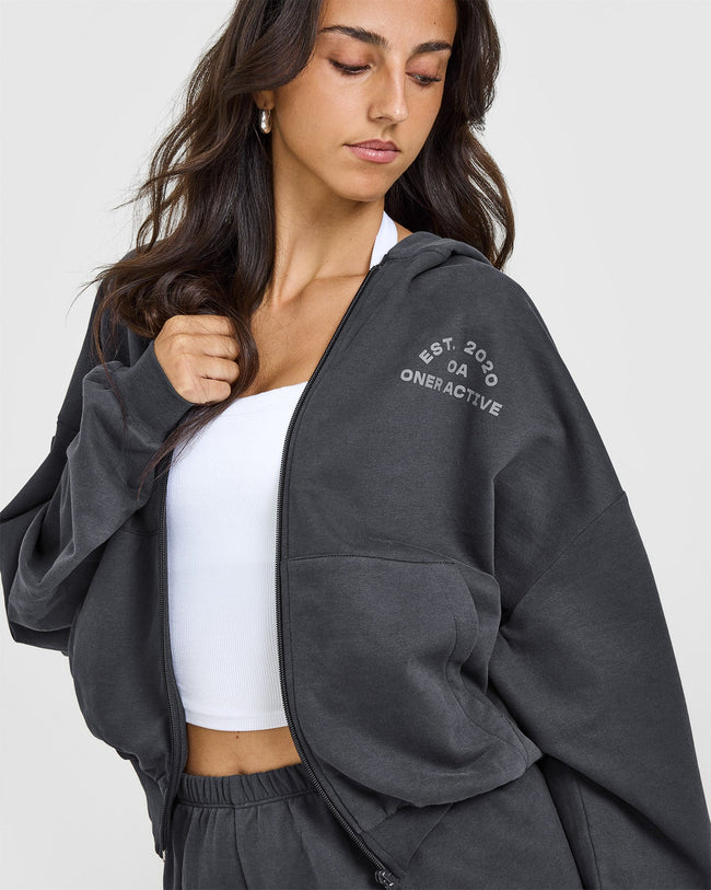 Lightweight Zip Through Hoodie with Graphic Coal
