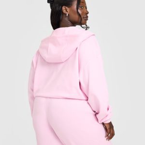 Lightweight Zip Through Hoodie With Oner Logo Washed Chalk Pink