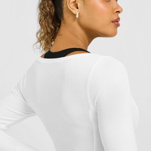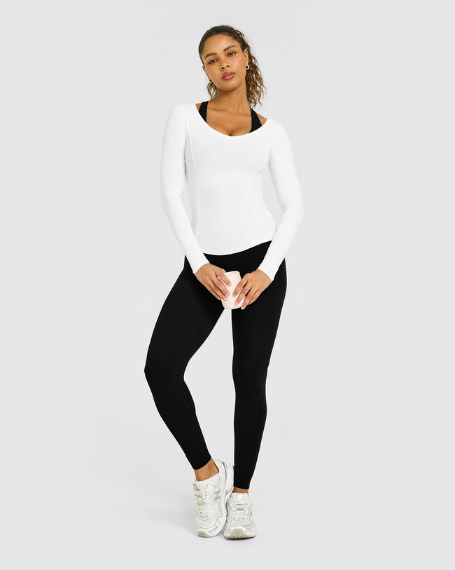 Mellow™ Rib V Neck Long Sleeve Top White