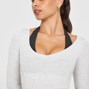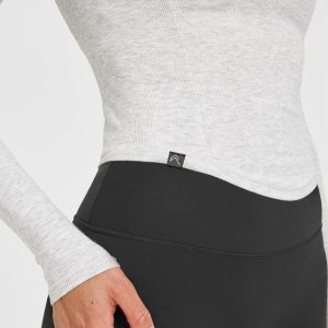 Mellow™ Rib V Neck Mid Long Sleeve Top Light Grey Marl