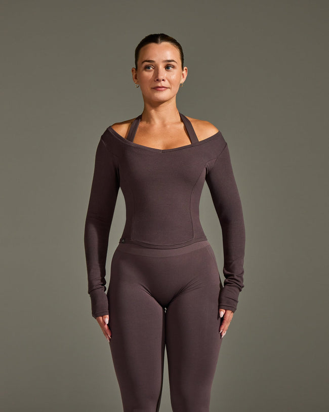 Mellow™ Rib V Neck Mid Long Sleeve Top Umber Brown