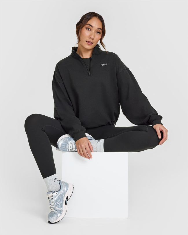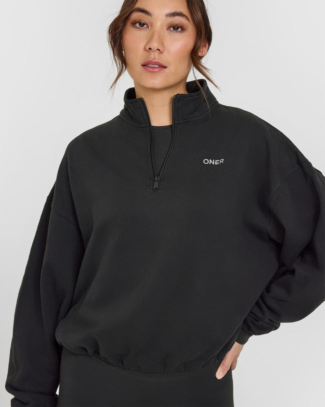Mid Weight 1/4 Zip Sweatshirt Soft Black