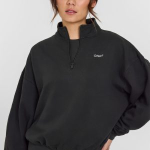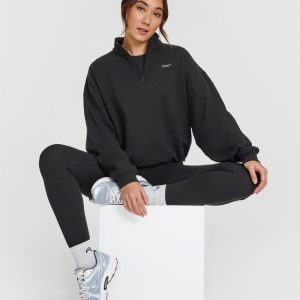 Mid Weight 1/4 Zip Sweatshirt Soft Black