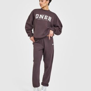 Oversized Piped Woven Straight Leg Track Bottoms Deep Umber Brown