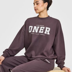 Mid Weight Sweatshirt With Printed Logo Umber Brown