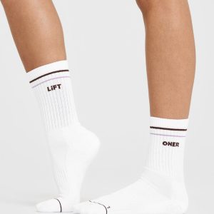 Oner Heart Crew Socks 3 Pack White/Lavender