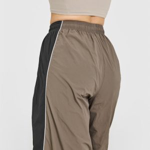 Oversized Piped Woven Straight Leg Track Bottoms Moss Brown