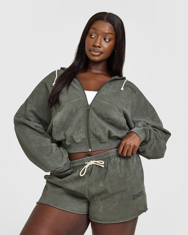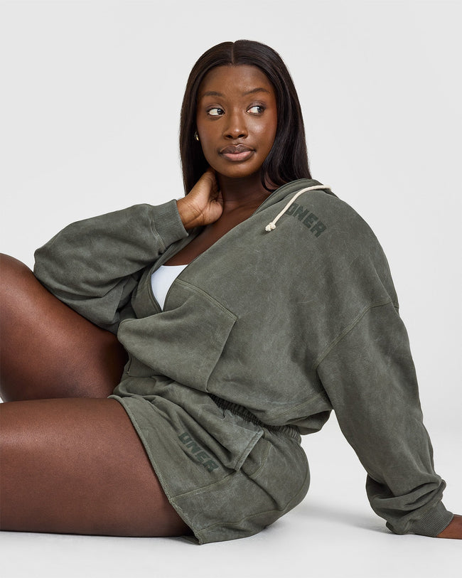 Raw Lounge Oversized Zip Hoodie Washed Dark Khaki