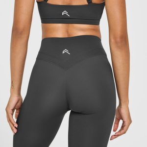 Unified High Waisted Leggings White Logo Coal